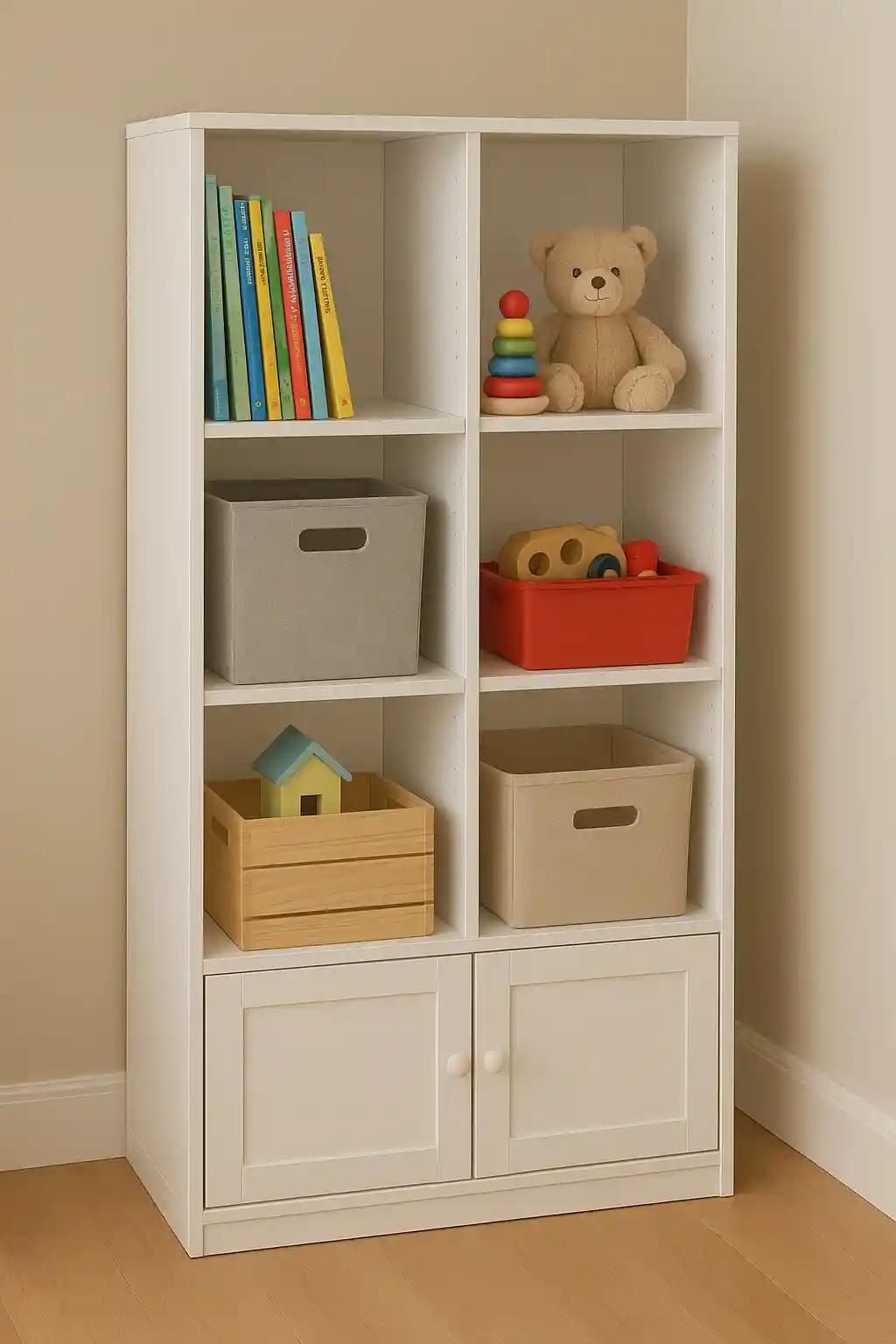 Storage benches serve a dual purpose: they provide seating and hidden storage. Place one at the end of your child’s bed, in the hallway, or living room. Choose a bench with a hinged top or built-in cubbies to keep toys organised.