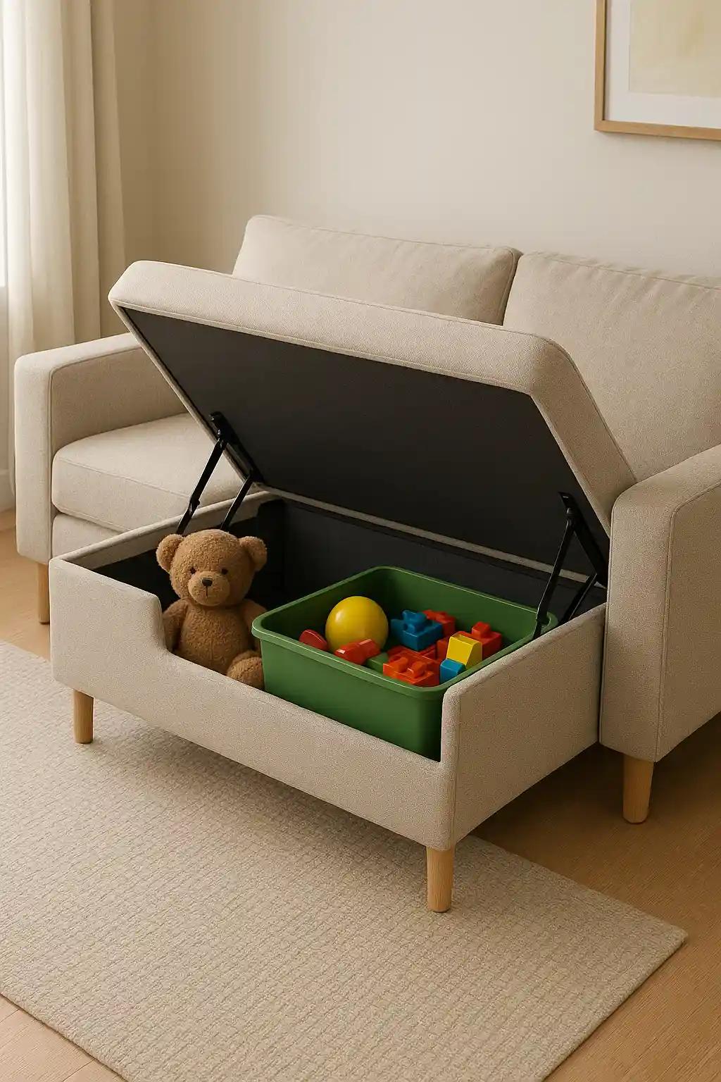 Modern sofas and beds often come with hidden storage options. Lift the seats or mattress base to reveal ample space for storing larger toys or less frequently used items.