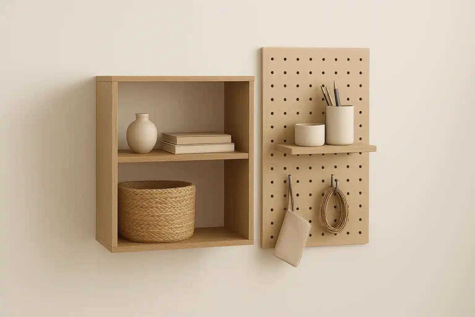 6. Wall-Mounted Shelves and Pegboards